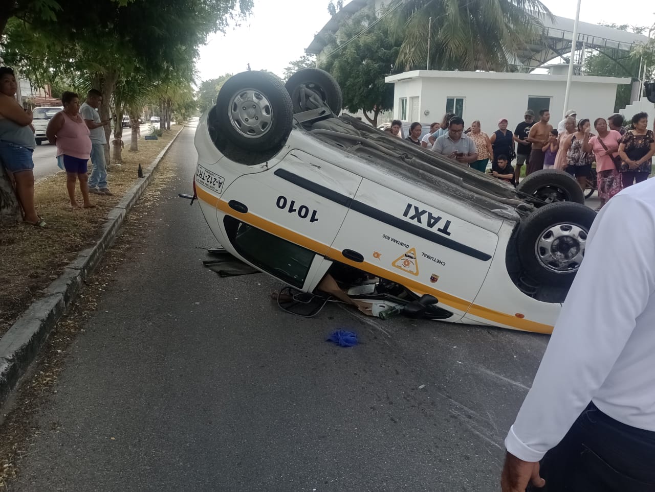 Un vehículo quedó volcado esta madrugada en la isla de Cozumel, luego de un aparatoso accidente que provocó la movilización de los cuerpos de emergencia.
