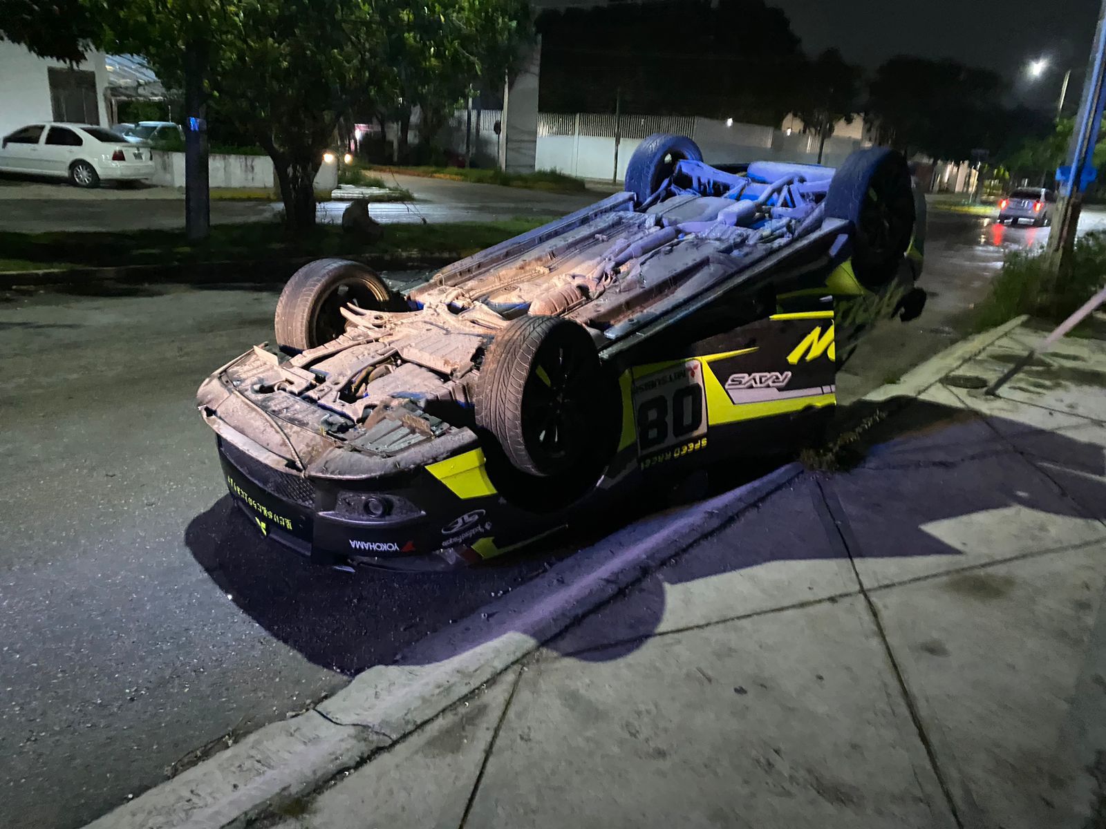A pesar de lo aparatoso que fue el accidente, el conductor del automóvil que terminó con las llantas para arriba, salió bien librado.