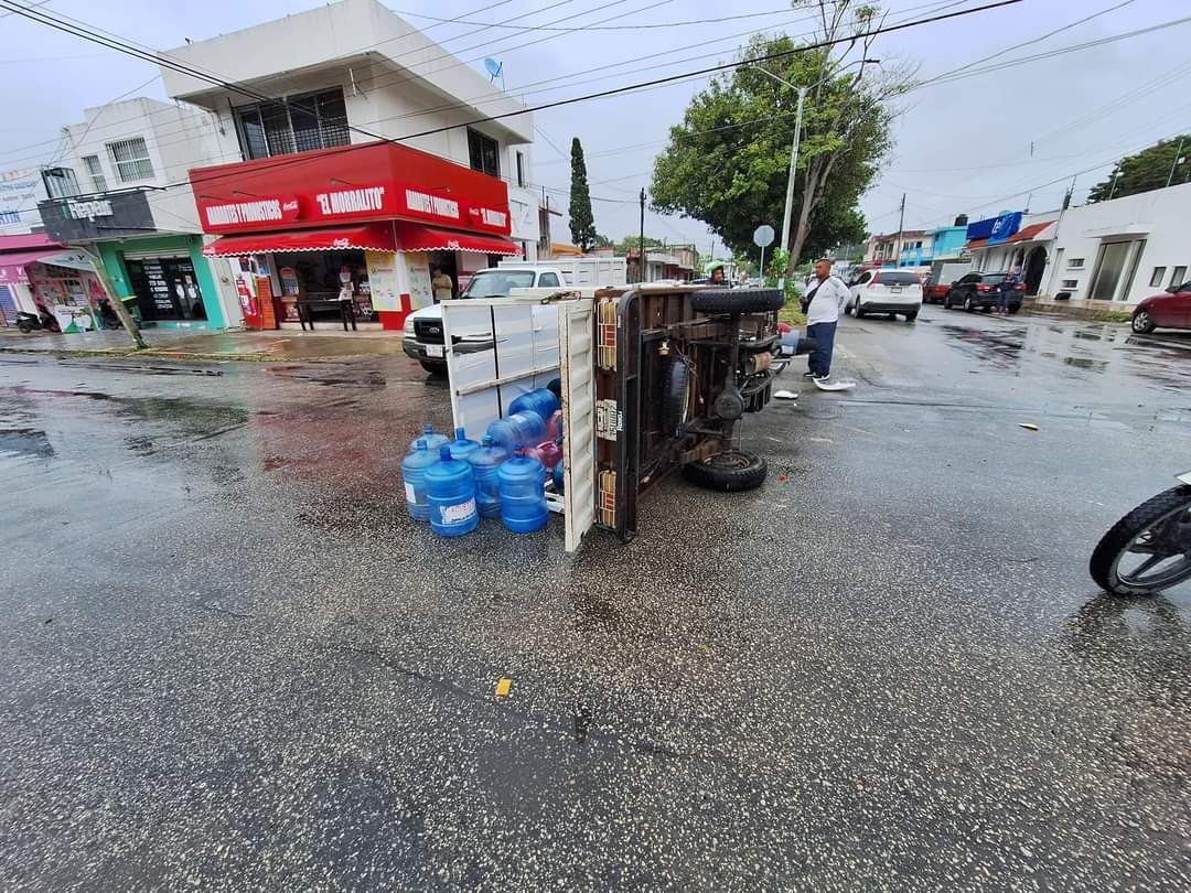 Los primeros reportes indican que el responsable de la volcadura del repartidor fue el conductor de un automóvil tipo Tsuru.