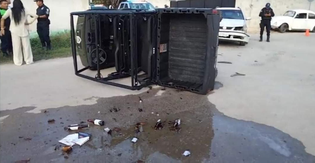 La volcadura se registró en la carretera Tulum - Playa del Carmen, donde no hubo personas lesionadas de gravedad.