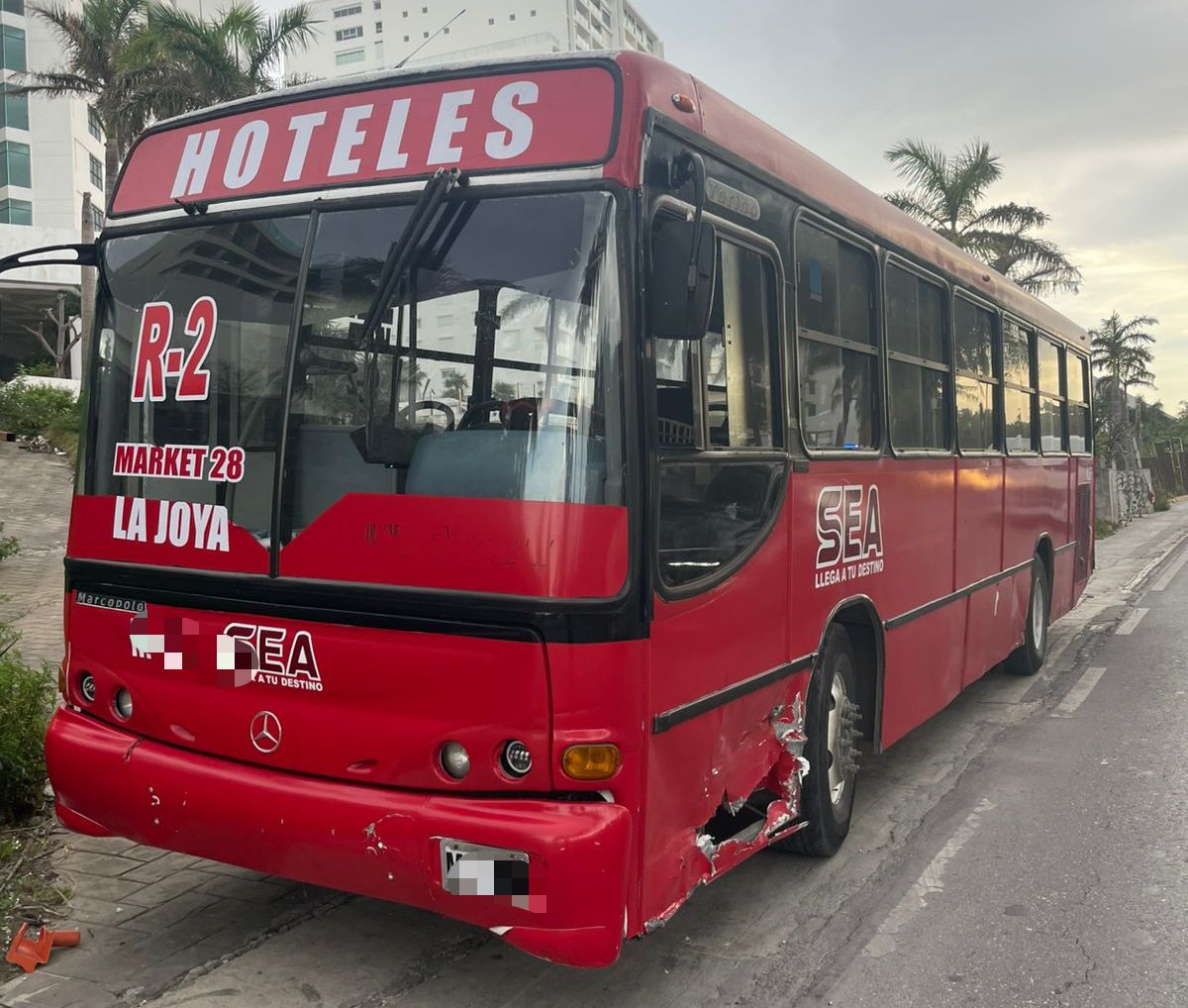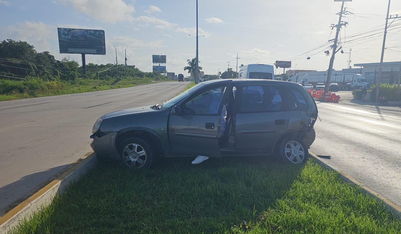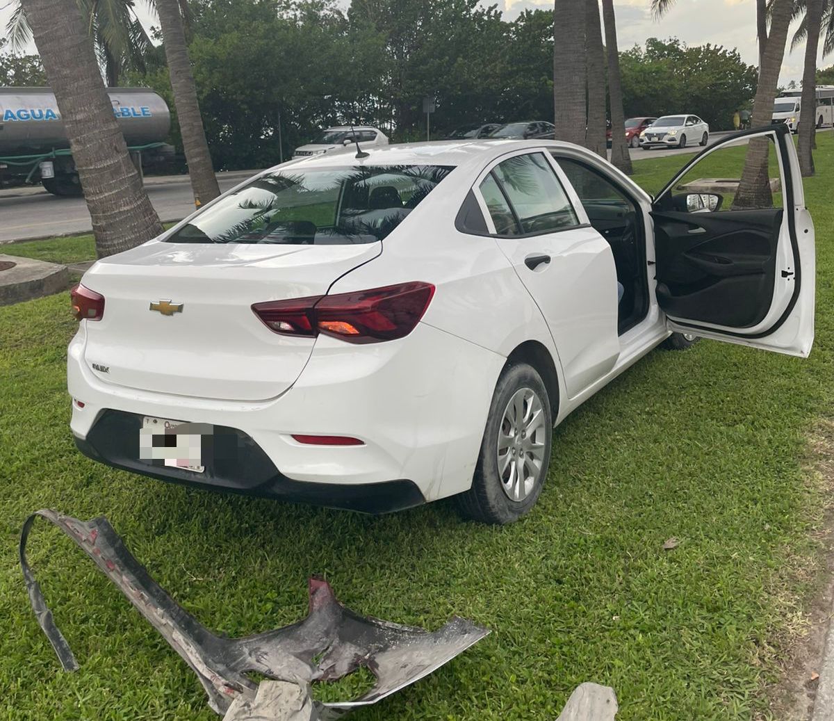 En el primer accidente que se registró en la Zona Hotelera de Cancún, se vieron involucrados un vehículo Chevrolet Onix blanco y un autobús del transporte público que cubre la Ruta 2 de la empresa Autobús Maya caribe.