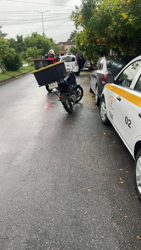 Chetumal (Marcrix Noticias)- Un taxista del Sindicato Único de Choferes de Automóviles de Alquiler (SUCHAA) cochó contra otro vehículo y decidió darse a la fuga, pero motorepartidores lo alcanzaron y lo obligaron a pagar los daños.