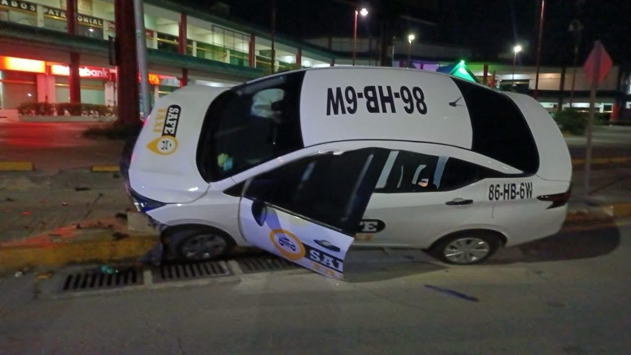 Los hechos se registraron alrededor de las 03:30 horas del 31 de enero, cuando un vehículo Nissan Versa color blanco, perteneciente a la empresa Safe Taxi y con placas de circulación 86-HB-6W, circulaba sobre la avenida Xcaret.