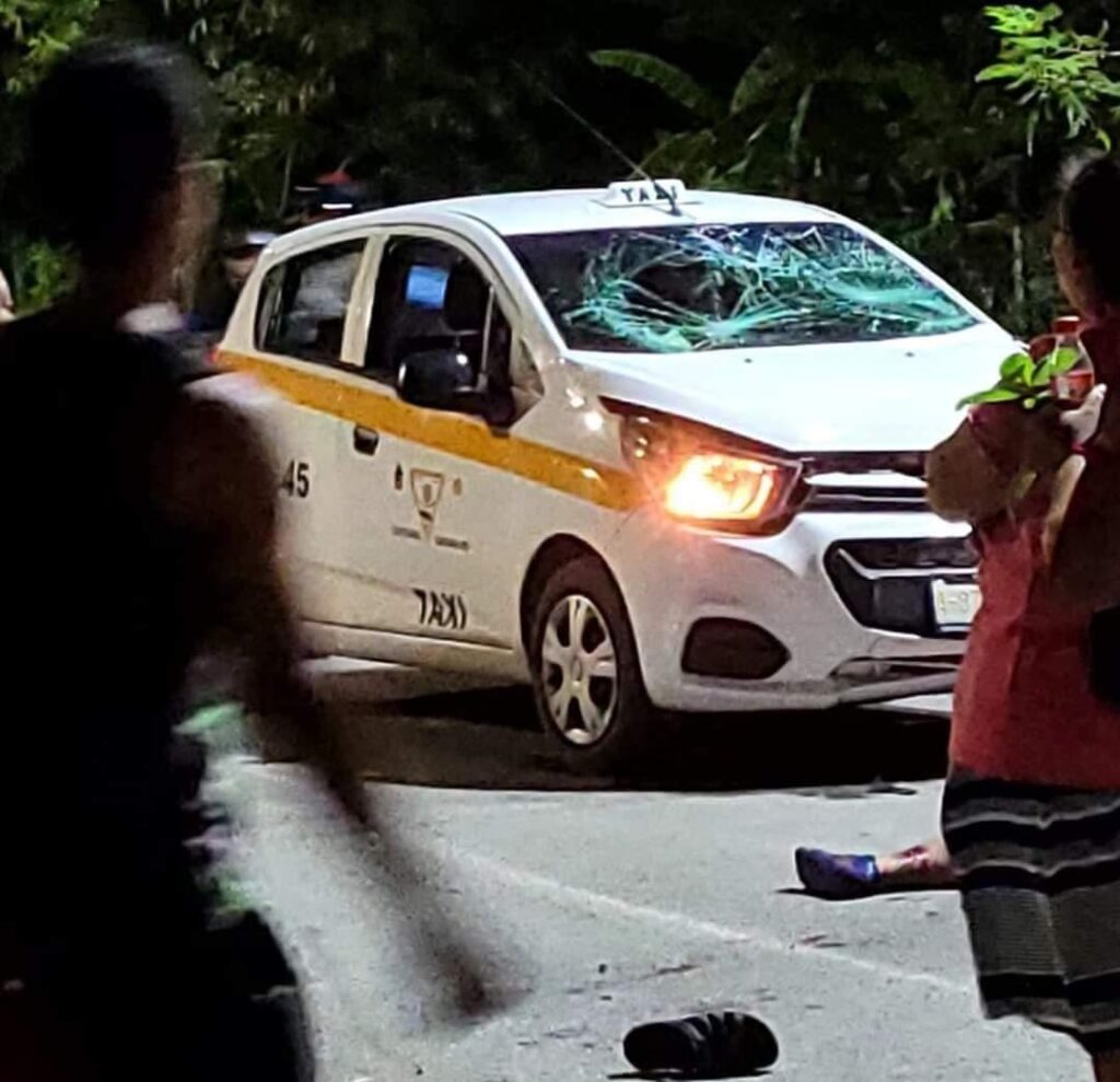 El conductor del taxi marcado con el número marcado con el número económico 645 no alcanzó a frenar al ver a la pareja de motociclistas y los termino arrollando.