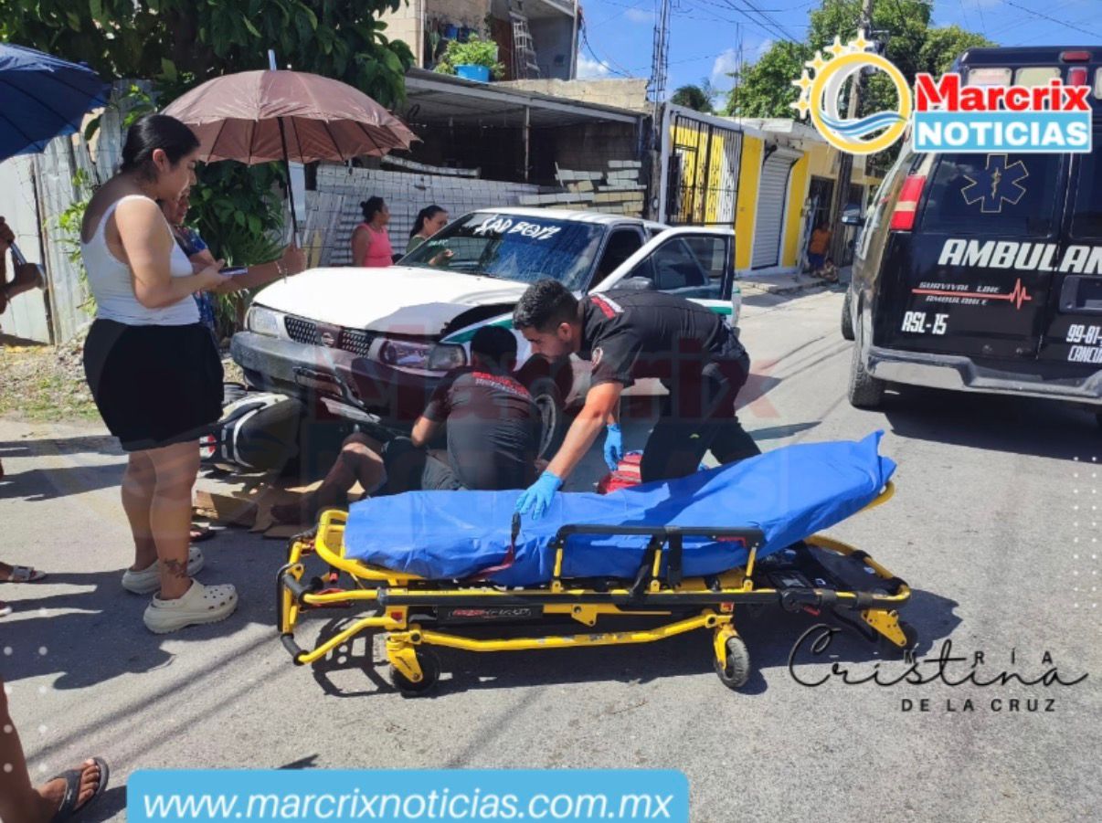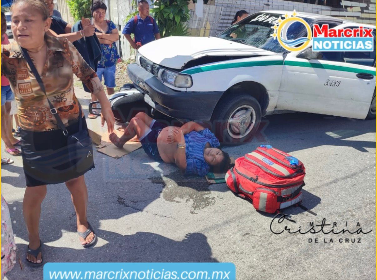 Cancún (Marcrix Noticias).- Una mujer resultó lesionada la tarde de este jueves tras ser atropellada por un taxista en la Supermanzana 220 de Cancún, en un accidente que también involucró a una motocicleta.