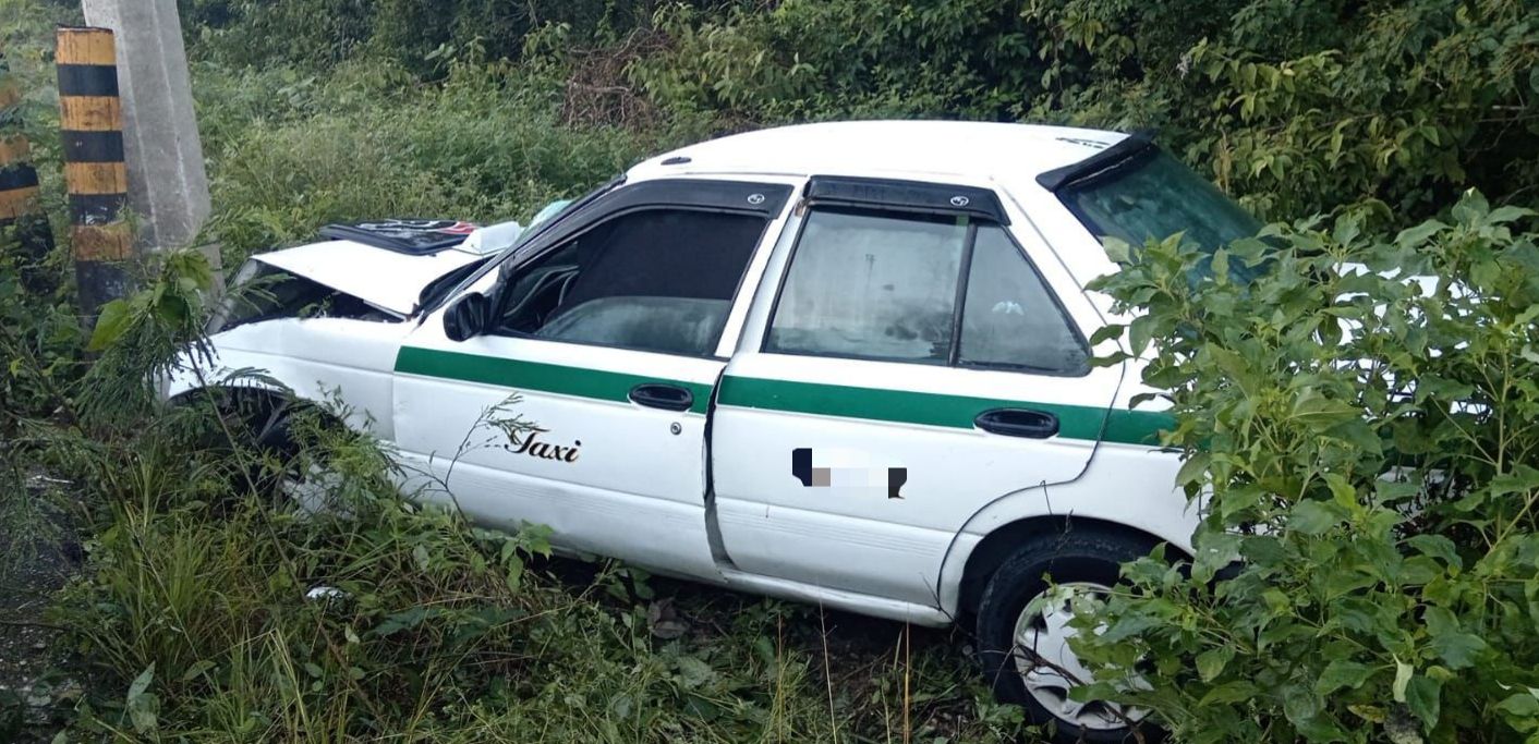 Cabe mencionar que el taxi terminó fuera de la carpeta asfáltica, entre la maleza, y el taxista tuvo fuertes lesiones, por lo que fue llevado al hospital.