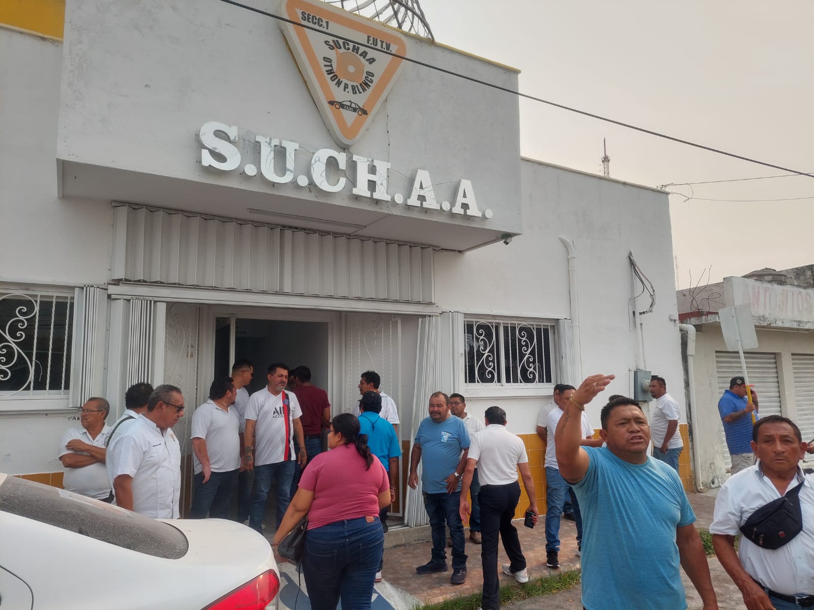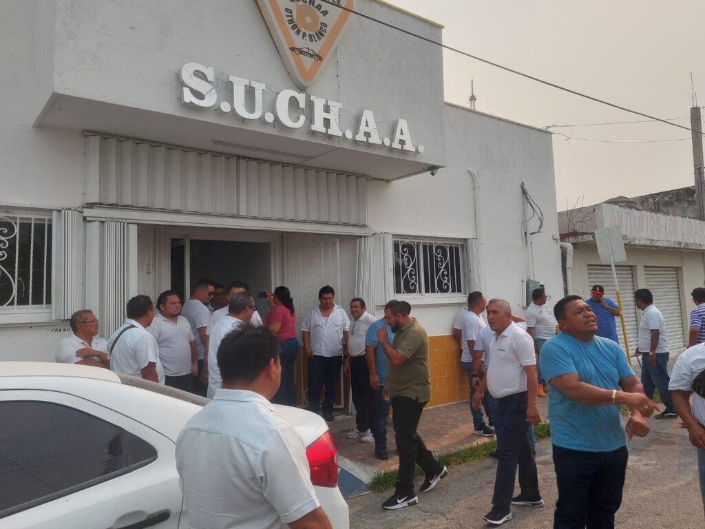 Chetumal, Marcrix Noticias.- Un grupo de taxistas pertenecientes al Sindicato Único de Choferes de Automóviles de Alquiler (SUCHAA), tomaron las instalaciones del edificio para manifestar su inconformidad por la “permanencia ilegal”, del actual dirigente Julio César Castilla Zapata “Durazo” en la Secretaría General.