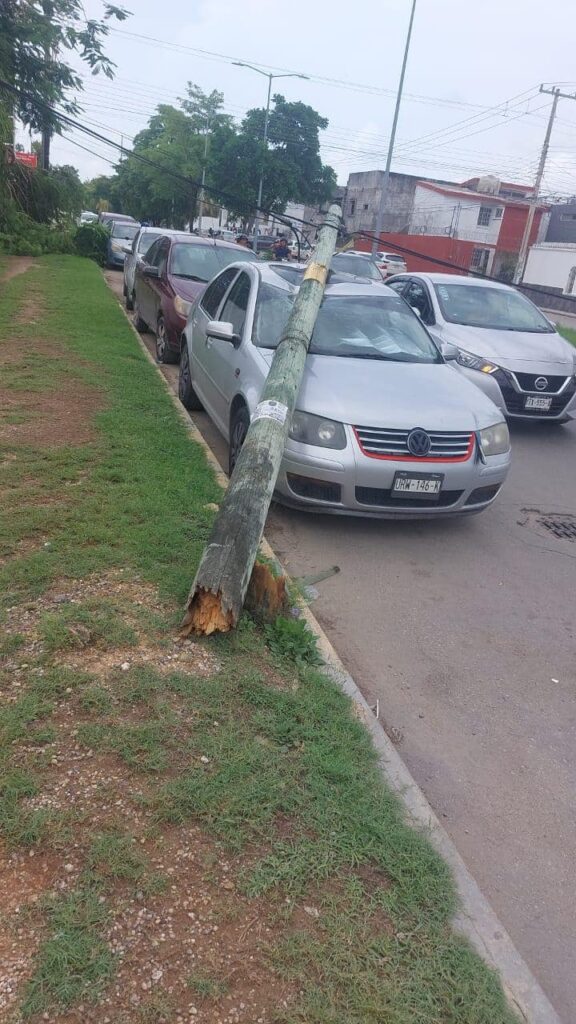 Los hechos ocurrieron aproximadamente a las 12.15 horas de este viernes 12 de julio, en la banqueta de la Avenida Javier Rojo Gómez, entre la Avenida De Los Insurgentes y la calle Carlos A. Vidal, en la colonia Gonzalo Guerrero, a un costado del edificio de los Servicios Educativos Quintanarroenses, cuando por los vientos de una leve llovizna, el poste cayó sobre el Jetta color gris.