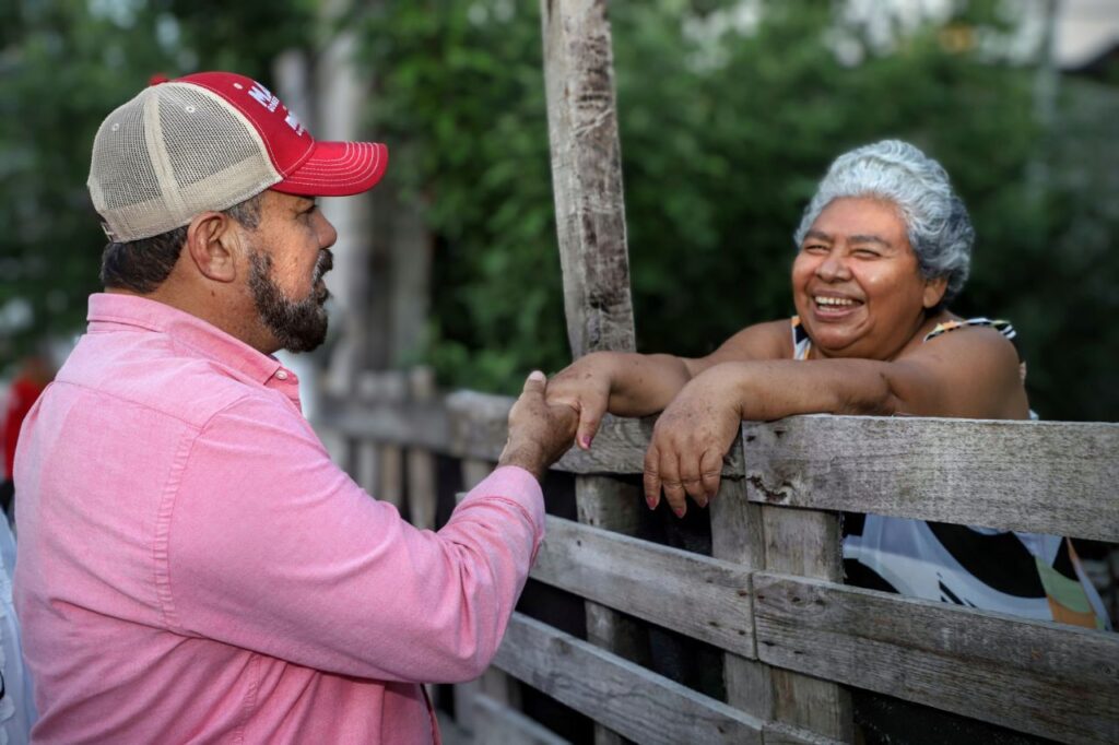 A su paso por las colonias de Puerto Juárez, Donceles 28 y de la súpermanzana 68 destacaron el buen trabajo que realizó Julián Ricalde en la pavimentación de calles con concreto hidráulico y la entrega de útiles escolares cuando fue alcalde de Benito Juárez.