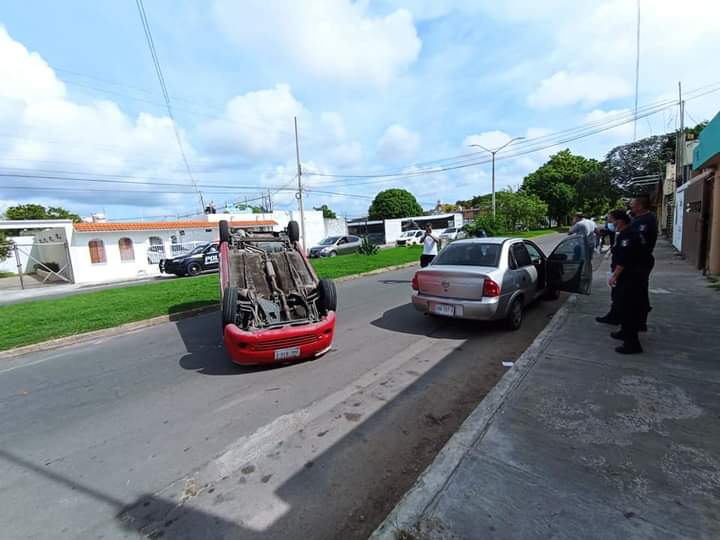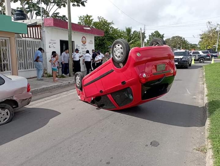 Chetumal(Marcrix Noticias).- Con las llantas hacia arriba es como terminó un imprudente automovilista durante la mañana de hoy en Chetumal.