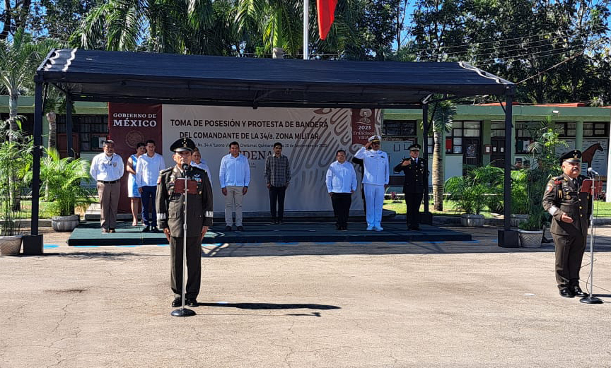 Chetumal (Marcrix Noticias).- El General de Brigada Diplomado de Estado Mayor Gerardo Serna Melchor, rindió protesta como nuevo comandante de la 34/a. Zona Militar, en el estado de Quintana Roo