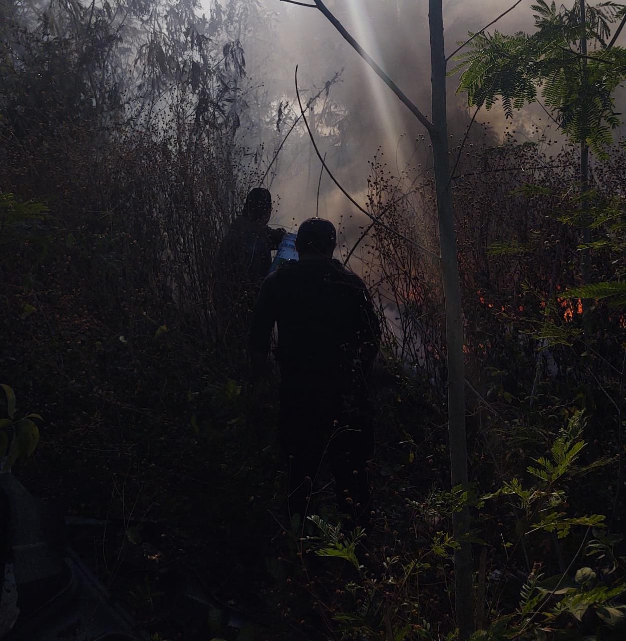Para las tareas de control y liquidación se encuentran trabajando 213 personas combatientes: 100 de la Conafor; 5 de la Secretaría de la Defensa Nacional (Sedena); 5 de la Secretaría de Marina (Semar); 7 de la Guardia Nacional; 3 de Gobierno del Estado; 6 de Gobierno municipal; 10 de Protección Civil municipal; 27 pertenecientes a brigadas de protección forestal; 20 de brigadas rurales; 8 voluntarios y 22 de personal subcontratado.