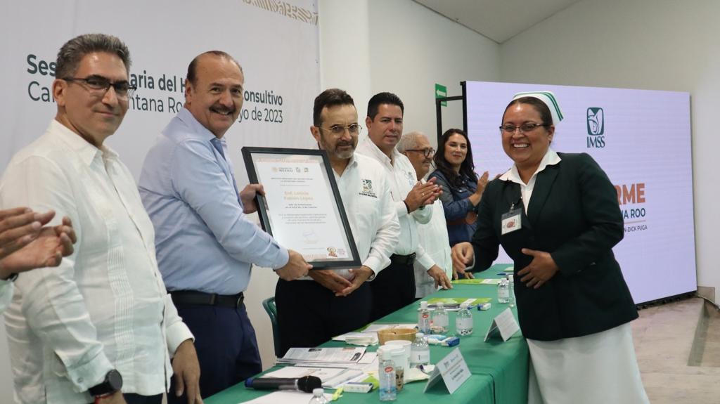 Resaltó que se logró la certificación de la Unidad de Medicina Familiar (UMF) No. 11 de Playa del Carmen, ante el Consejo de Salubridad General, con una vigencia al 28 de abril de 2025, la cual se otorgó por la buena calidad en la atención médica y seguridad a los pacientes.