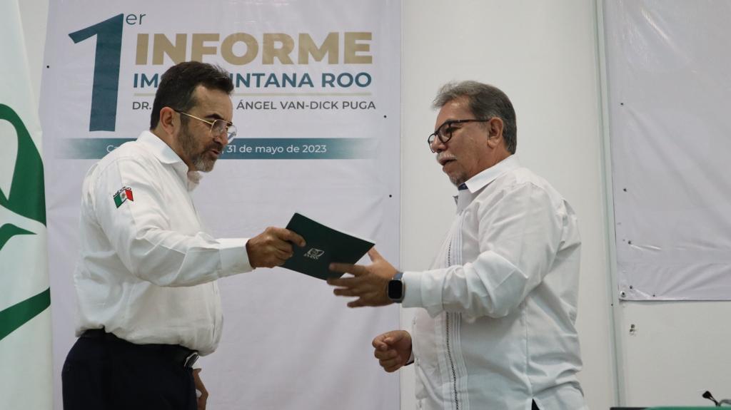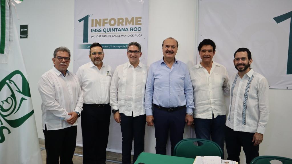 Cancún, Quintana Roo, ,(MARCRIX Noticias), 31 de mayo de 2023 .- El Órgano de Operación Administrativa Desconcentrada (OOAD) del Instituto Mexicano del Seguro Social (IMSS) en Quintana Roo celebró la Décima Sesión Ordinaria del H. Consejo Consultivo, en la que el doctor José Miguel Ángel Van-Dick Puga, titular de la Representación rindió su primer informe de actividades y resaltó inversiones, desarrollo de infraestructura y recuperación de servicios.