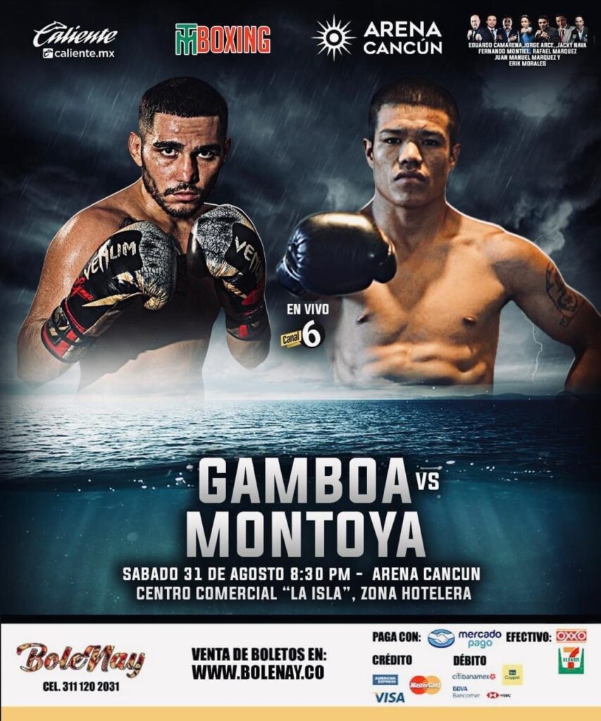 Con trece nocauts en medio de 24 victorias y solo dos peleas perdidas el “Pitbull” Gamboa está listo para lanzarse a consolidar la carrera con TM BOXING y tendrá como rival a un experimentado Rubén Montoya con 14 victorias con 8 nocauts, teniendo ocho peleas perdidas con un empate; la pelea estelar promete una batalla desde que suene la campana.