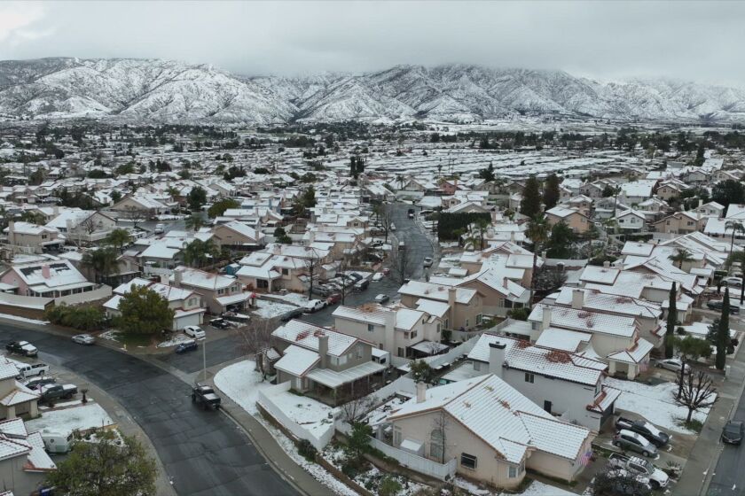 A otras áreas no les estaba yendo tan bien. En las comunidades al pie del desierto de Mojave, el Servicio Meteorológico Nacional dijo que estaba recibiendo informes de conductores atrapados en la nieve en el lago Elizabeth y el lago Hughes.