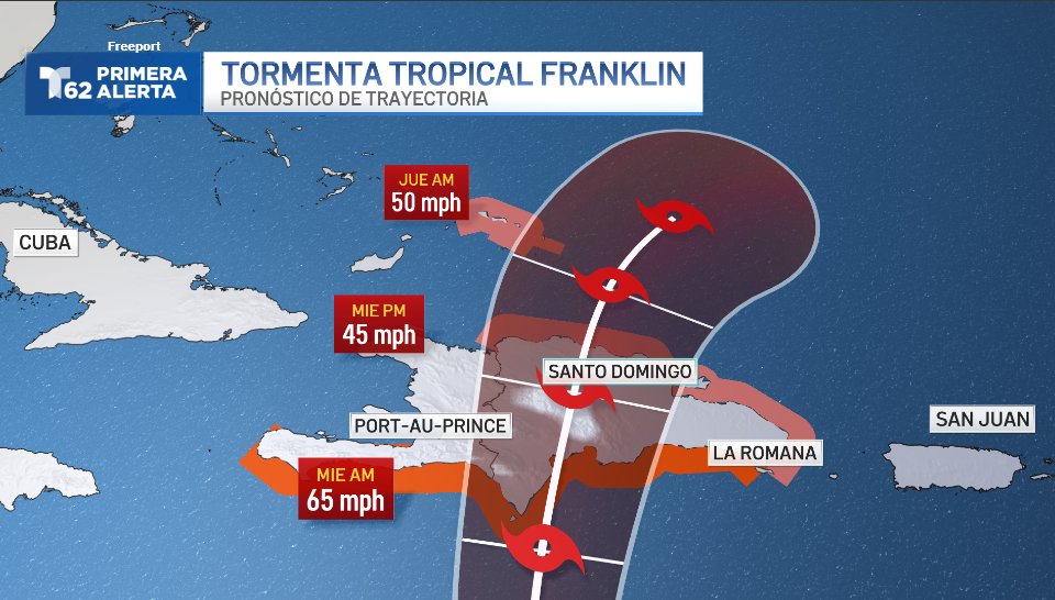 “Se prevé que a partir del martes Franklin genere condiciones de tormenta tropical en partes de República Dominicana y Haití, donde se han emitido advertencias de tormenta tropical”, indicó el reporte.