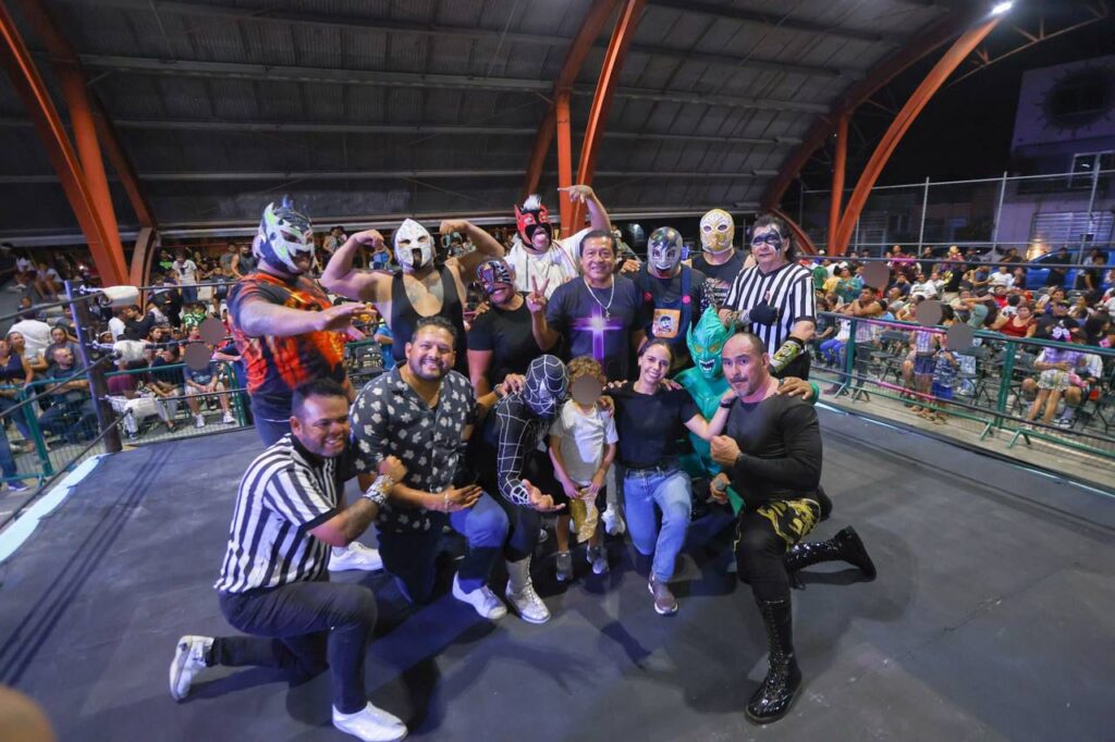 Para cerrar con broche de oro la gira por la zona norte de la ciudad, la candidata de la transformación, acudió como invitada a una función de lucha libre en el Parque Ecológico de la Supermanzana 247, donde reunida con las y los vecinos de Villas Otoch, reafirmó su visión de consolidar un Cancún con comunidades de bienestar, familiar, en paz, para ello, pidió el apoyo de las y los cancunenses el próximo 2 de junio votar todos Morena y arrasar juntos con el “Plan C”. Texto y Fotos: Tomado del boletín