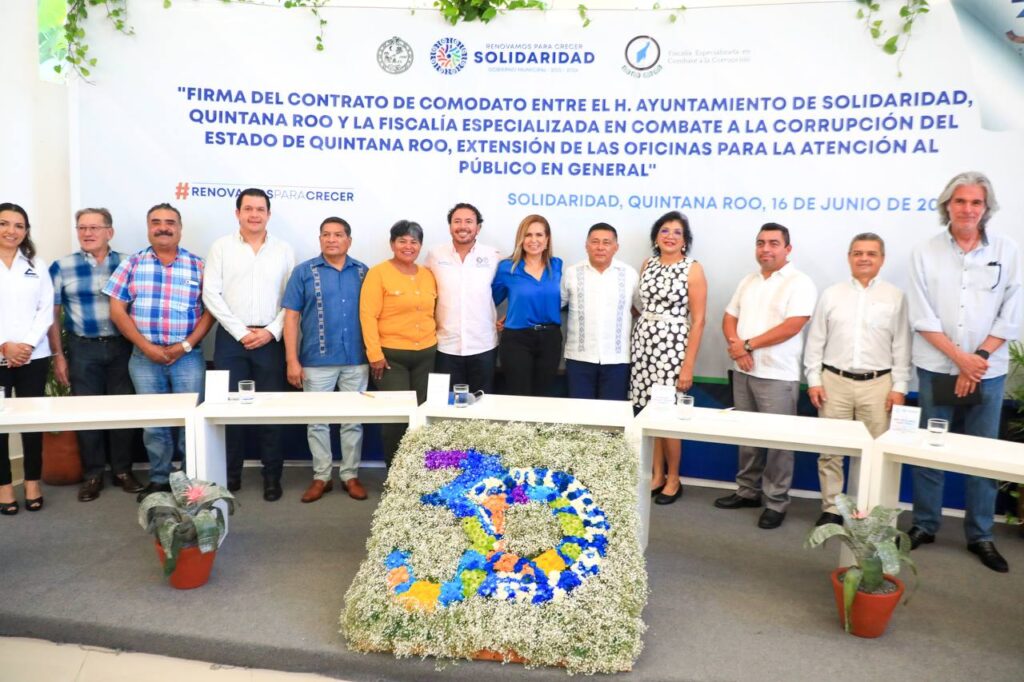 Playa del Carmen, Solidaridad, (MARCRIX Noticias), 16 de junio del 2023.- “Nadie se había atrevido a que tengamos una oficina de la Fiscalía en este municipio; lo más importante es trabajar en favor de los ciudadanos, en el combate a la corrupción y en el buen gobierno”, manifestó la presidenta Lili Campos al firmar el comodato entre el ayuntamiento de Solidaridad y la Fiscalía Especializada en Combate a la Corrupción de Quintana Roo, para la extensión de las oficinas de la unidad de investigación, acusación y procesos.