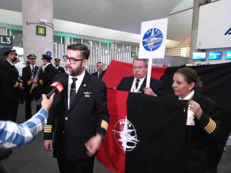 La Asociación Sindical de Pilotos Aviadores (ASPA) tomó las banderas de huelga esta tarde y las desplegó en el AICM.