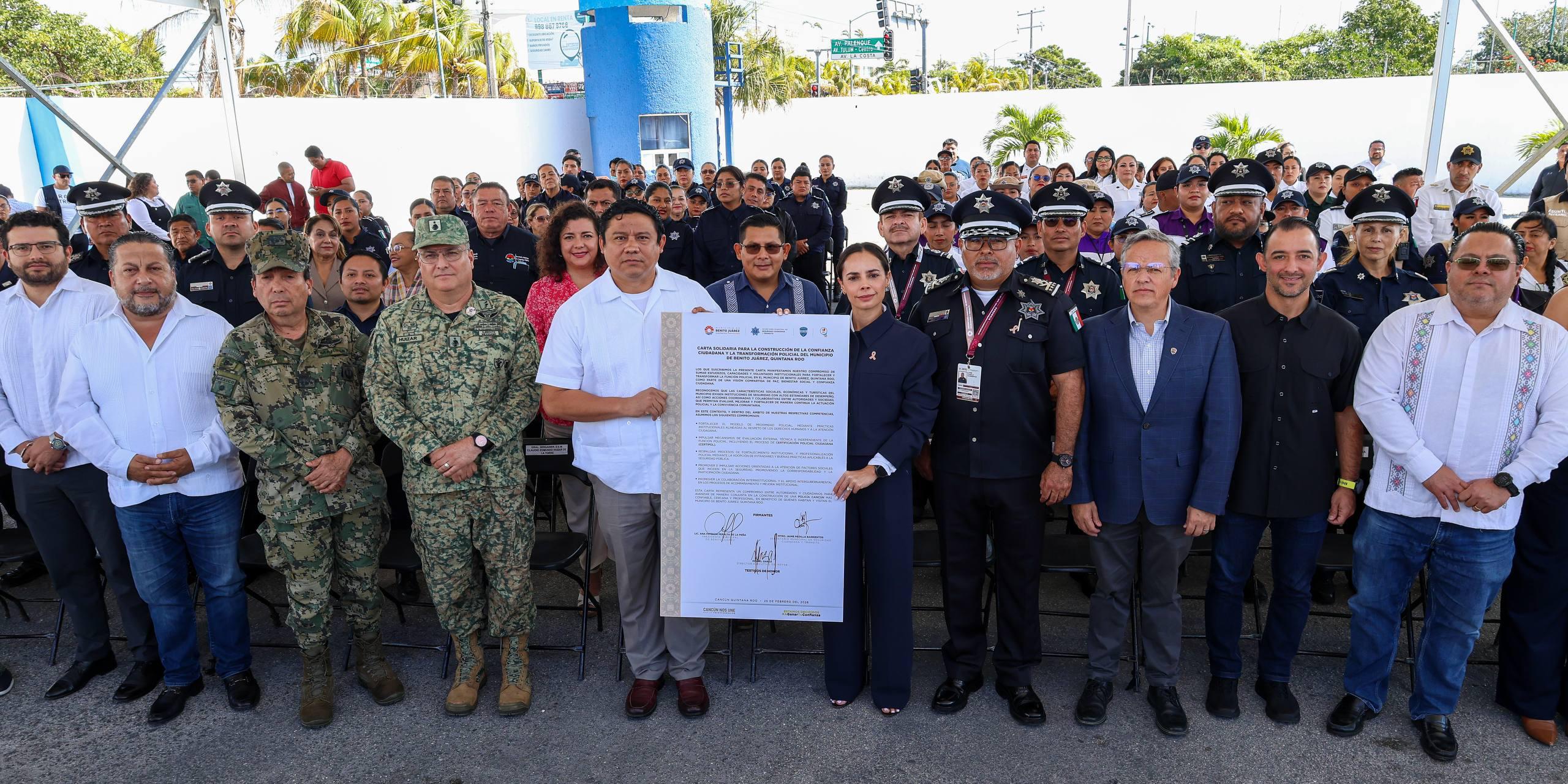 Como parte del evento, las autoridades y representantes de diferentes cámaras empresariales en su calidad de testigos de honor, firmaron la carta solidaria para la construcción de la confianza ciudadana y la transformación policial del municipio, que plasma el compromiso para consolidar una policía más confiable, cercana y profesional en beneficio de los habitantes, gracias a cinco acciones clave: modelo de proximidad policial; evaluación externa, técnica e independiente de la función policial, incluyendo la certificación policial ciudadana; estándares y buenas prácticas; atención de factores sociales; y apoyo interinstitucional.