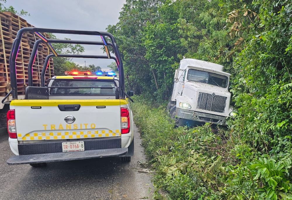 El impacto fue suficiente para que el conductor del tractocamión perdiera el control del volante, lo que resultó en que el camión se saliera de la vía de rodamiento.