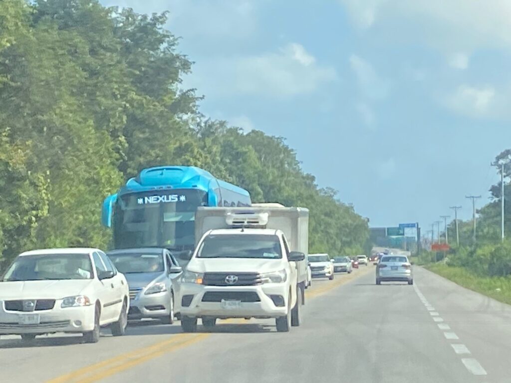 Marcrix Noticias hizo un recorrido por la zona, entre Cancún y Playa del Carmen y se detectaron varios puntos donde los vehículos circulaban a vuelta de rueda.