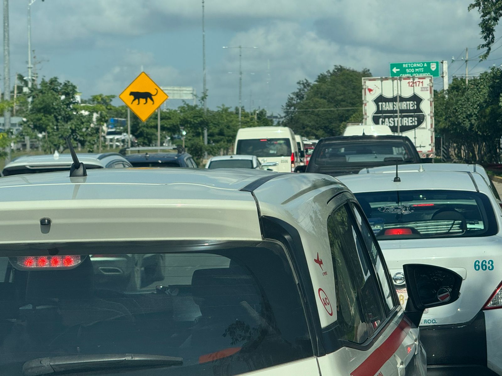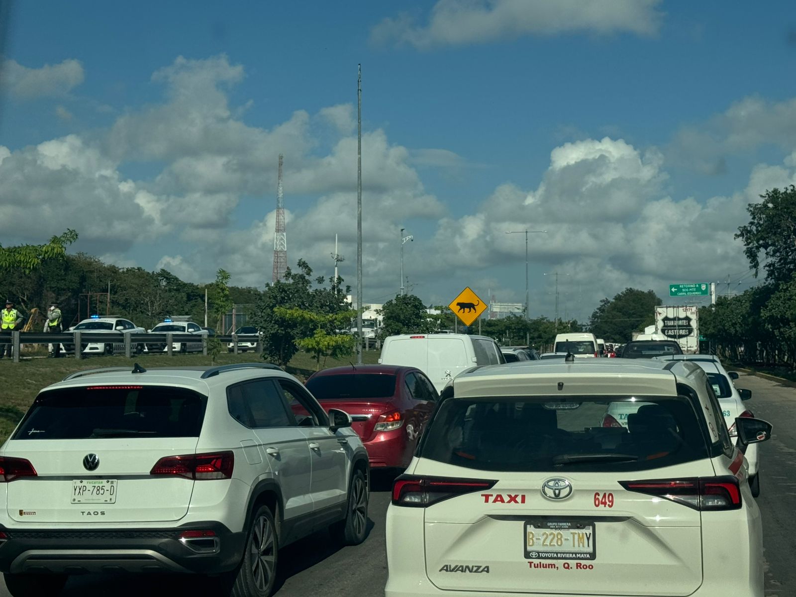 De acuerdo con los reportes preliminares, al menos dos accidentes se registraron sobre este corredor turístico, lo que provocó embotellamientos y un avance sumamente lento en ambos sentidos de la vía, que continúa hasta Cancún.