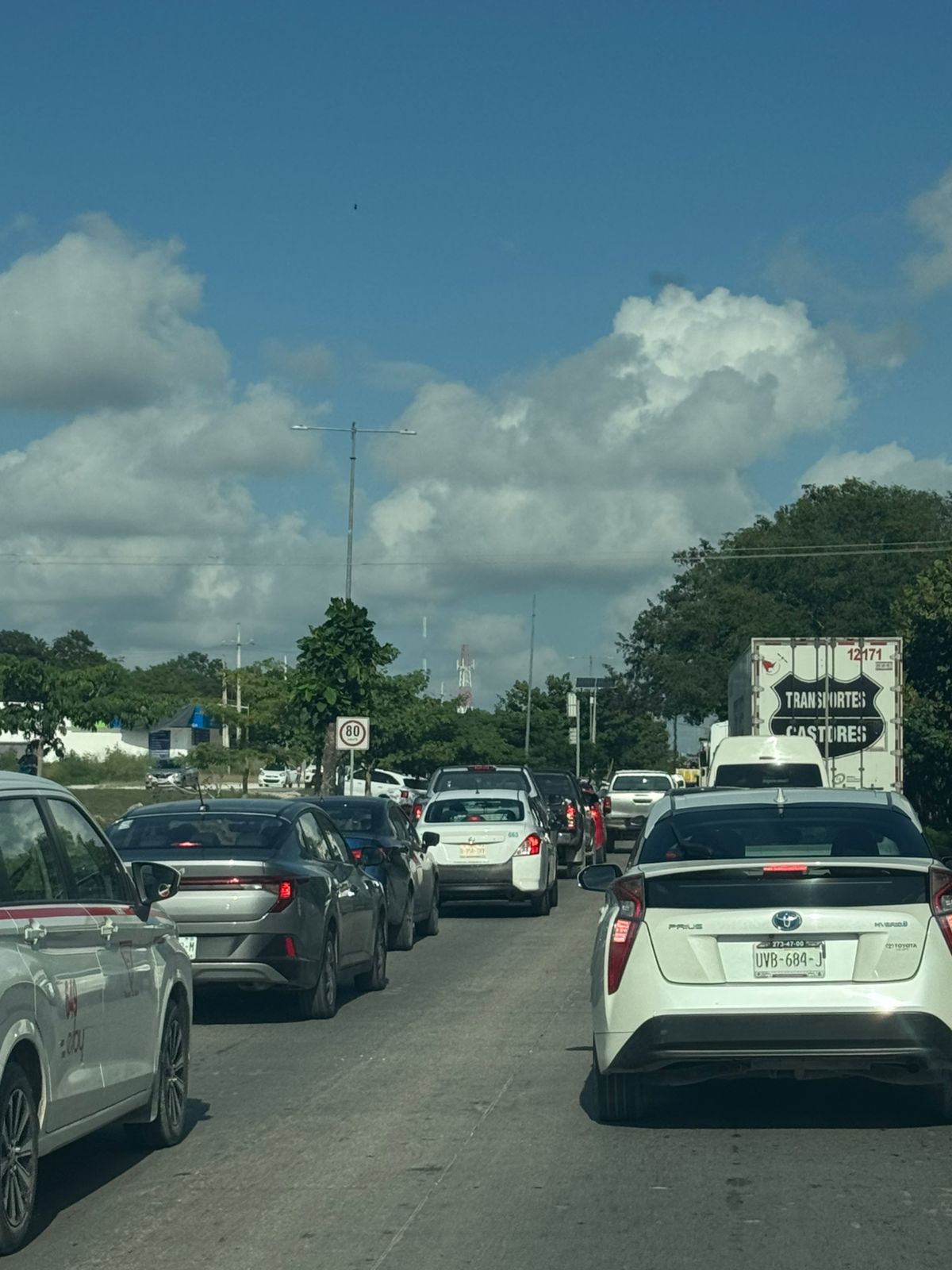 Playa del Carmen (Marcrix Noticias).- El tránsito vehicular se encuentra severamente afectado este viernes en la carretera federal 307, en el tramo que va de Tulum hacia Playa del Carmen, donde se reporta una larga fila de automóviles avanzando a vuelta de rueda.
