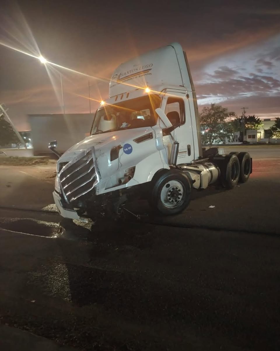 Un tráiler impactó un señalamiento tipo bandera en el km 41+000 del Periférico de Mérida, cerca de la salida a Celestún.