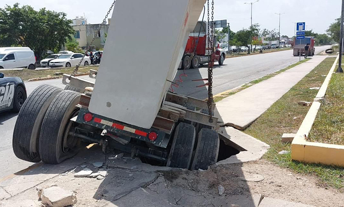 Playa del Carmen (Marcrix Noticias).- Fraccionamientos en Playa del Carmen se quedaron sin luz por varias horas, debido a que un trailero transportaba una pesada ballena cayó en un registro de CFE.