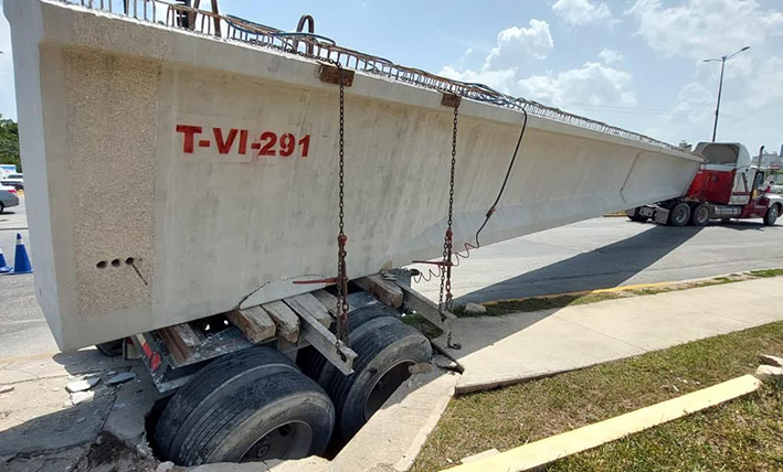 La pesada ballena que transportaba el tráiler sería utilizada para los puentes del Tren Maya