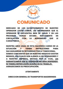 El respaldo de Transportes Maderenses ha sido bien recibido por la comunidad, que ha destacado la importancia de apoyar a los trabajadores en momentos difíciles como este.