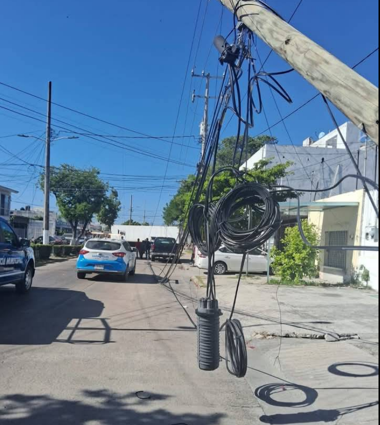 Campeche (Marcrix. Noticias).- Un trailero identificado como César Cobos fue detenido en Ciudad del Carmen después de protagonizar un accidente en el que derribó postes y cables de Telmex mientras maniobraba su tráiler Kenworth, causando daños significativos a la infraestructura de la compañía y a vehículos estacionados.