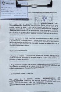 El documento, firmado por permisionarios del autotransporte federal, informa que la marcha será pacífica y partirá de las inmediaciones de la SCT (Av. Chichén Itzá con Av. Tulum) rumbo al Aeropuerto Internacional de Cancún.