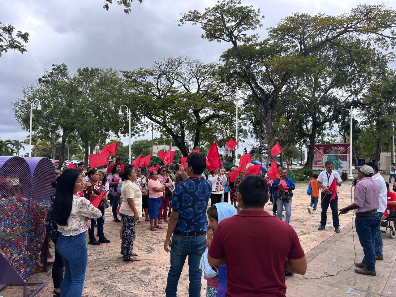 Una comisión representativa de colonos y liderazgos del Movimiento Antorchista en Quintana Roo se congregaron frente al Palacio de Gobierno para reanudar las gestiones pendientes y pedir una audiencia con las autoridades del Gobierno del Estado.