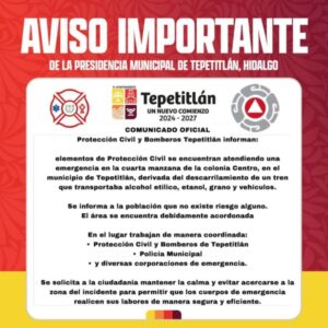 “Protección Civil, Bomberos y Policía Municipal atienden de manera coordinada una emergencia derivada del descarrilamiento de un tren. El área se encuentra controlada y no representa riesgo para la población”, comunicaron las autoridades locales a través de redes sociales.