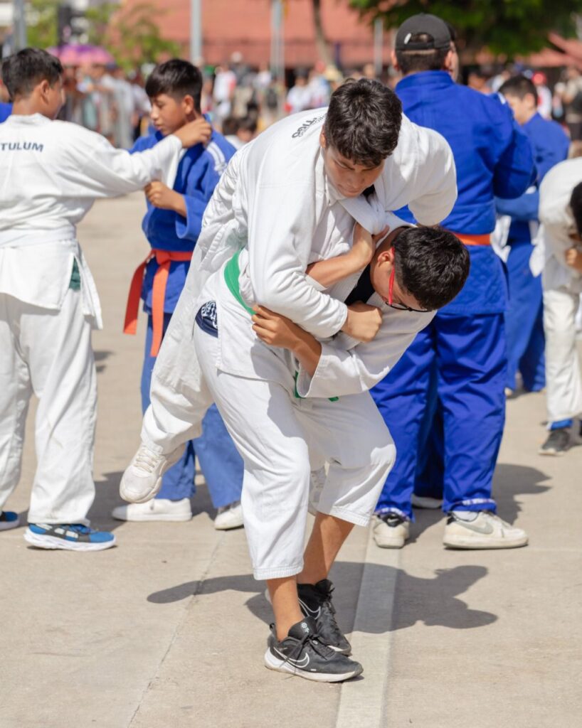 En el domo doble de la Unidad Deportiva dio inicio la ceremonia cívica. Allí se rindieron honores al Lábaro Patrio y se leyó una reseña por la conmemoración del aniversario de la Revolución Mexicana.