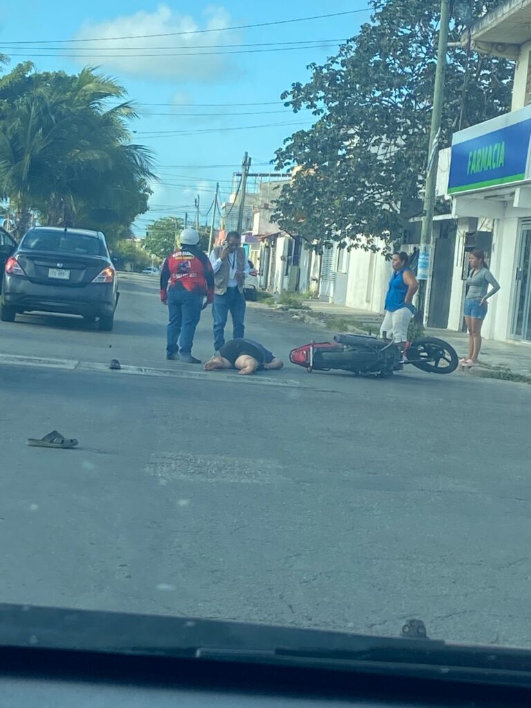 Del fuerte impacto, la mujer motociclista quedó tirada en el pavimento y empezó a convulsionar por lo que fue llamada una ambulancia para su traslado a un hospital de Chetumal.