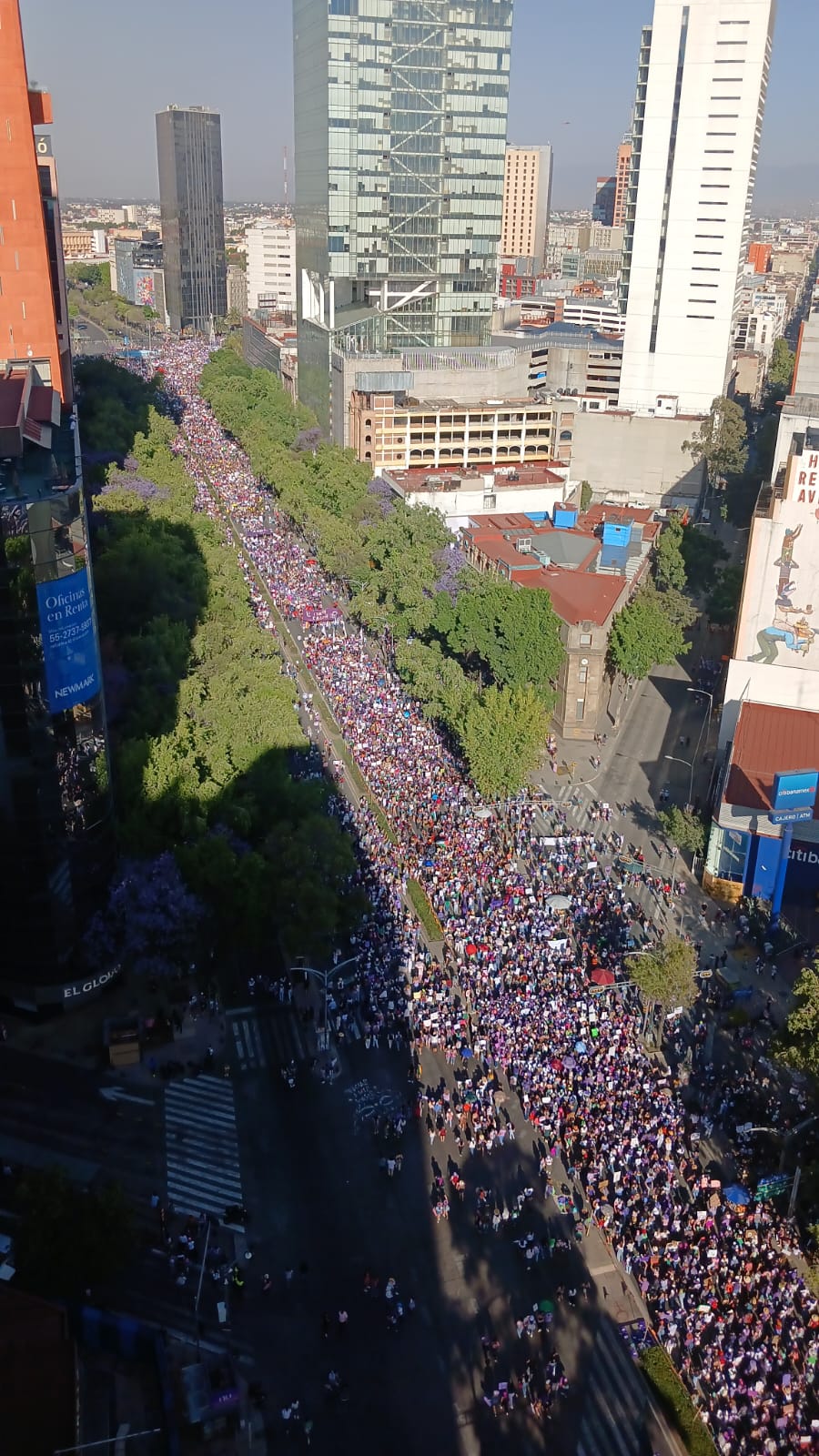 En la recién bautizada Glorieta de las Mujeres que Luchan —antes Glorieta de Colón— cientos de mujeres de todas las edades, de niñas, estudiantes hasta algunas de la tercera edad, comenzaron a acomodarse en contingentes para comenzar con la marcha conmemorativa que se replica en todo el mundo. Texto: Tomado de Redacción/Sinembargo / Foto: Internet/ Agencias