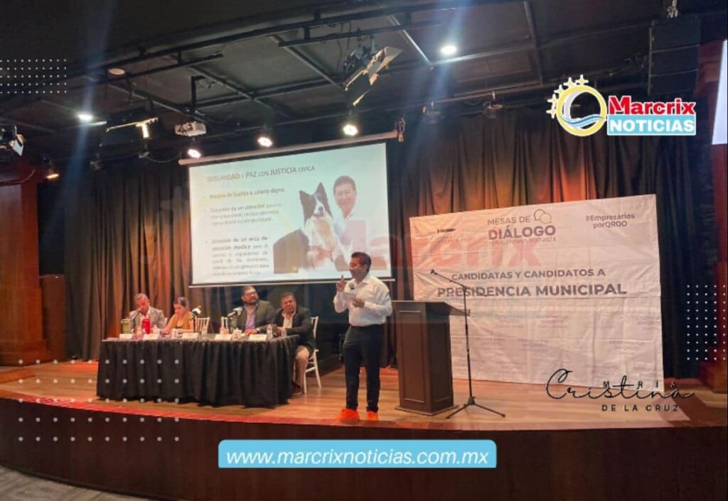 Al participar en la “Mesa de Diálogo Por Quintana Roo 2024”, organizada por empresarios, expuso su plan de trabajo, presentó su Cabildo y respondió cuestionamientos específicos de la ciudadanía y de líderes de organizaciones civiles ahí presentes.
