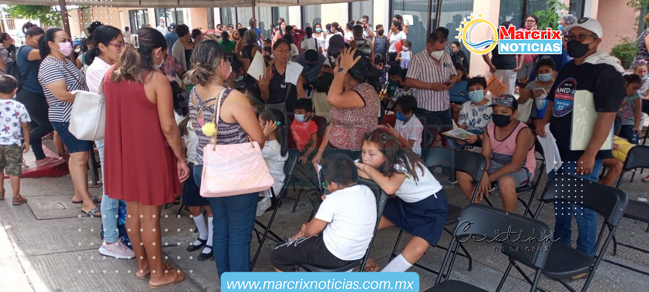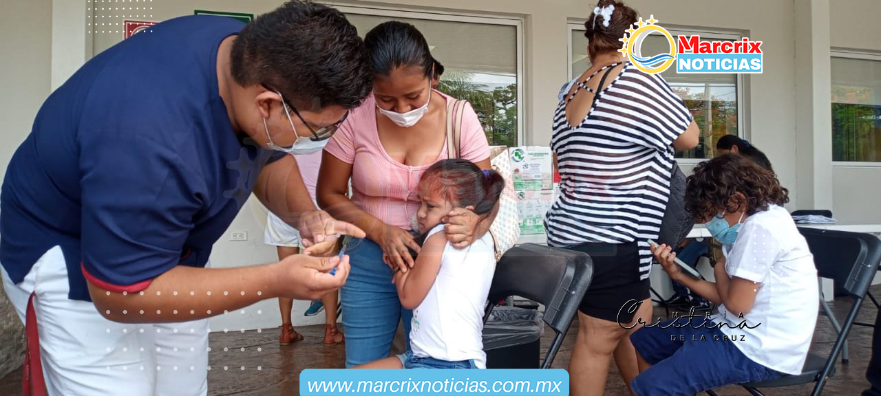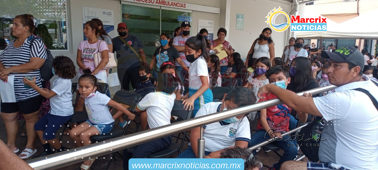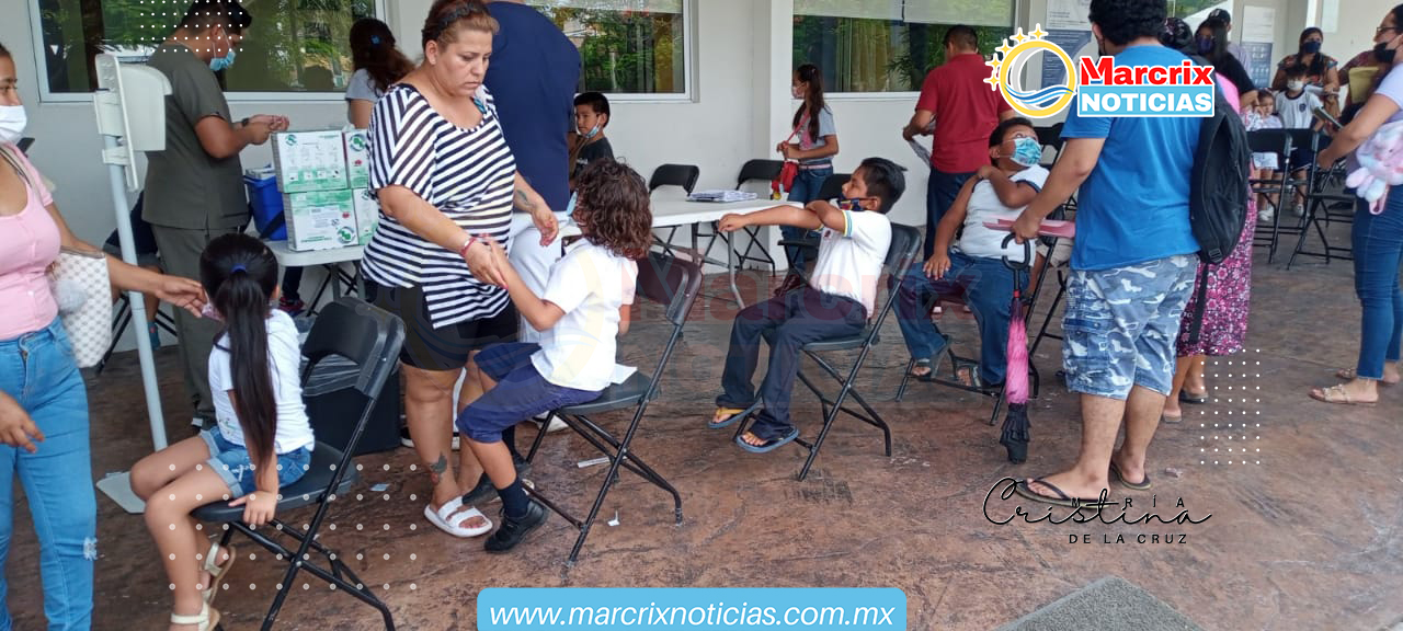 Cancún (Marcrix Noticias).- 500 niños y niñas fueron vacunados contra el Covid 19 con la dosis Pfizer en la entrada del Hospital Asura, que se ubica en la avenida Sunyaxchen, a unos metros del Mercado 28, lugar donde se instaló el modulo que abrió a las 9 de la mañana y cerró a la 4:30 de la tarde.
