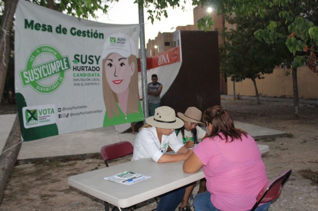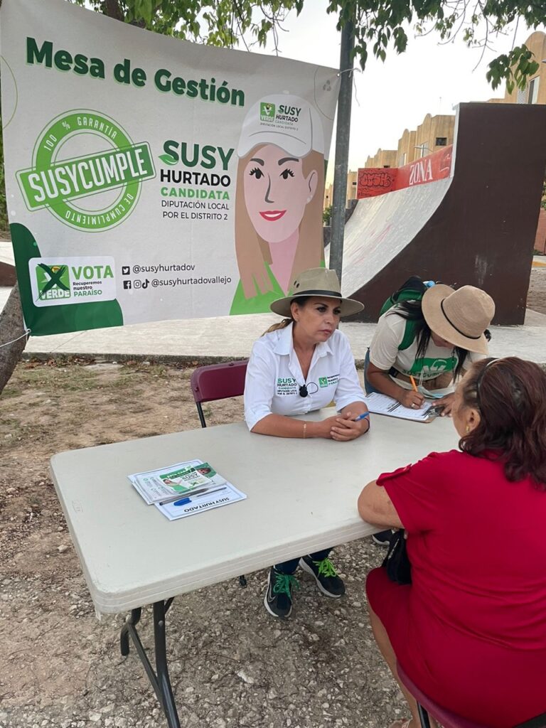 Cancún.- Con propuestas sustentadas en hechos, Susy Hurtado, candidata a diputada local por el Partido Verde Ecologista de México (PVEM) en el distrito II, la abanderada del “Verde”, instaló la primera mesa de gestión, iniciativa que buscará llevar al congreso para que esté estipulado por ley.