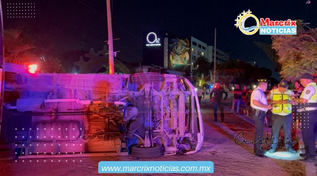 El accidente sucedió en los primeros minutos de este lunes en el cruce de las avenidas Tulum y Cobá frente a la glorieta de “El Ceviche”.