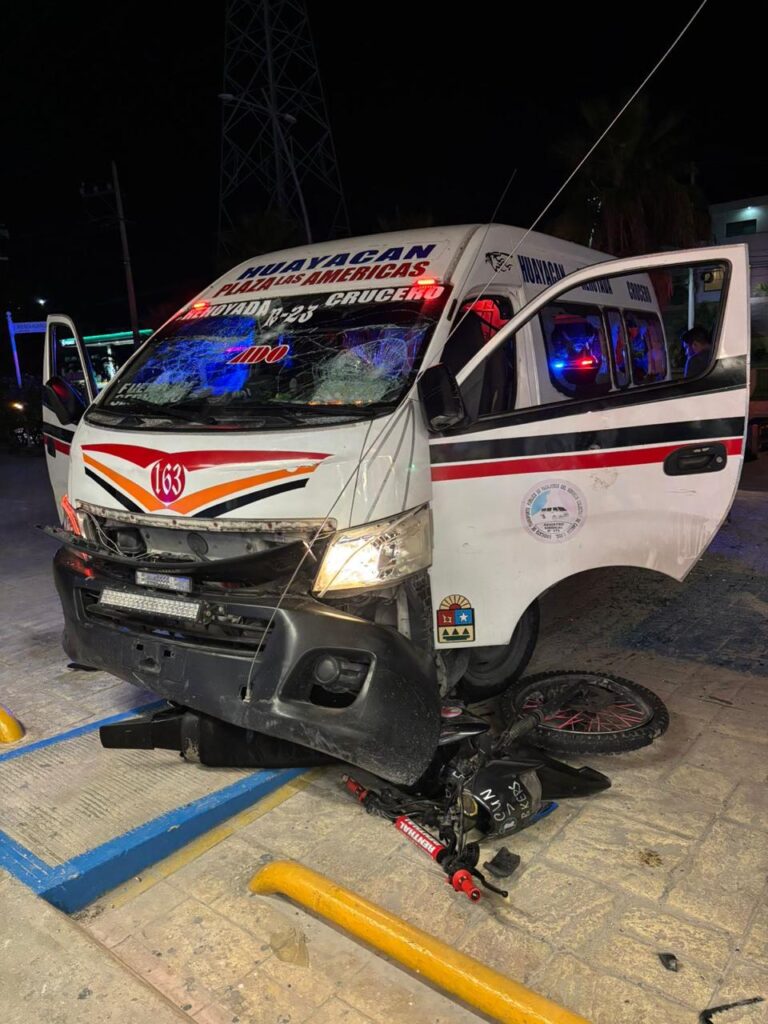 Los motociclistas enardecidos vandalizaron la una Van del servicio público que cubre la ruta Huayacán-Plaza las Américas en Cancún, luego de que el chofer de la Van arrollara a motociclistas y arrastrara a una motocicleta por más de un kilómetro sobre la avenida Huayacán.