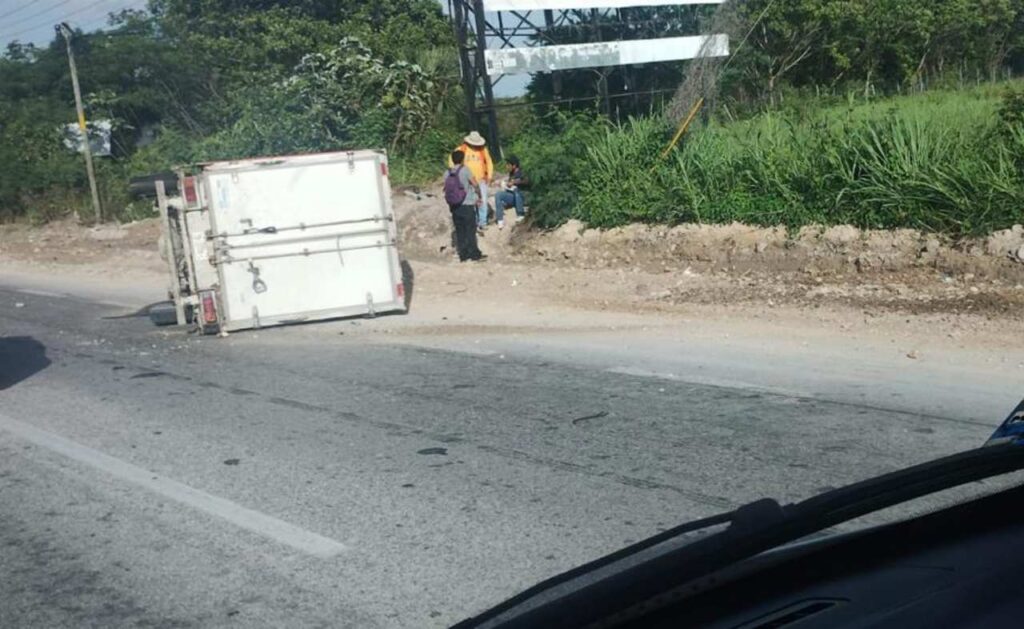 Cancún, Q. Roo (Marcrix Noticias).– Este miércoles se han registrado varios accidentes desde la madrugada, por ejemplo el de una camioneta que transportaba mercancía, que volcó en la carretera Cancún-Chetumal en la curva de Punta Maroma.