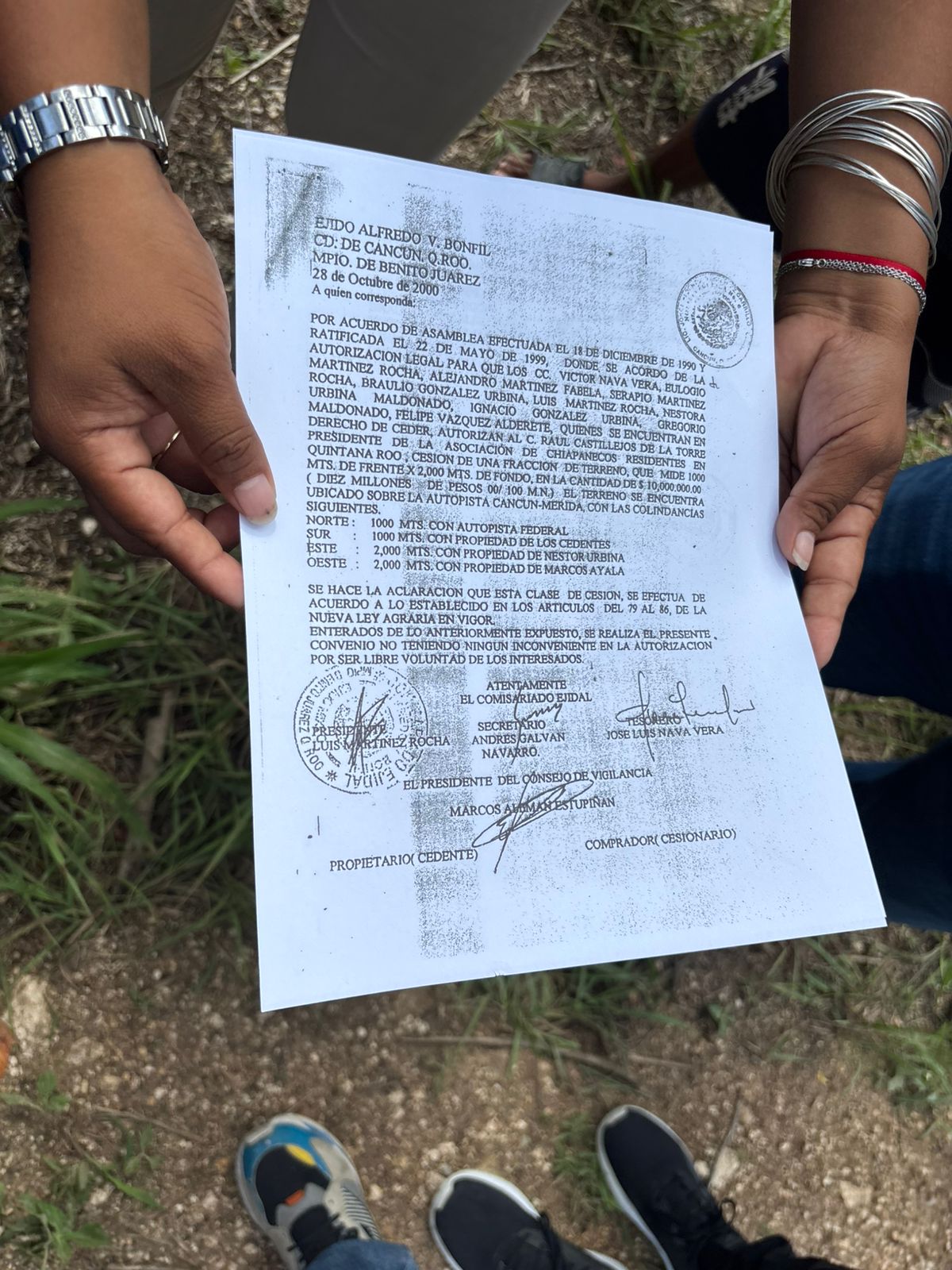 El documento, firmado por el entonces comisariado ejidal, Luis Martínez Rocha, incluyó permisos de desmonte y autorización para la urbanización de la colonia, con lo que se acreditaba legalmente que podían habitarla.