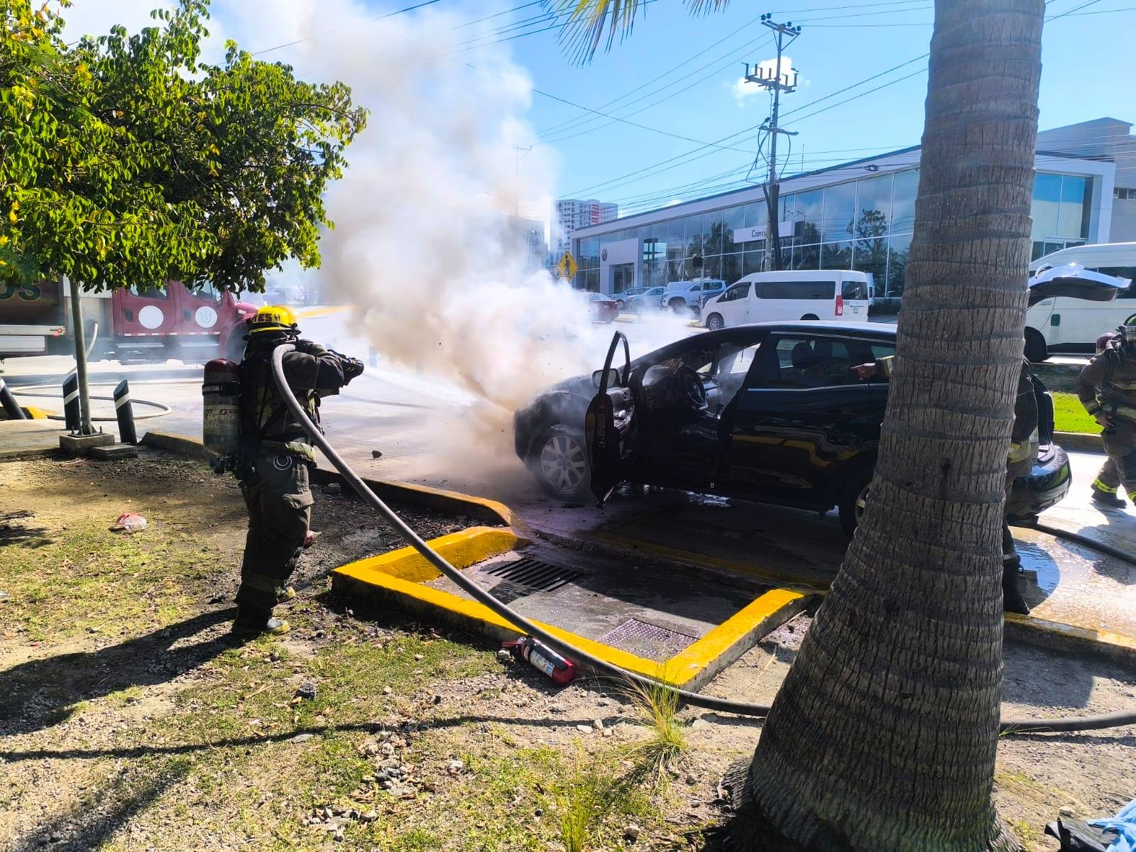 Cancún (Marcrix Noticias).– Un vehículo se incendió la tarde de este domingo sobre la avenida Tulum, en la intersección con avenida Sayil, lo que provocó la movilización de elementos del Cuerpo de Bomberos de Cancún.