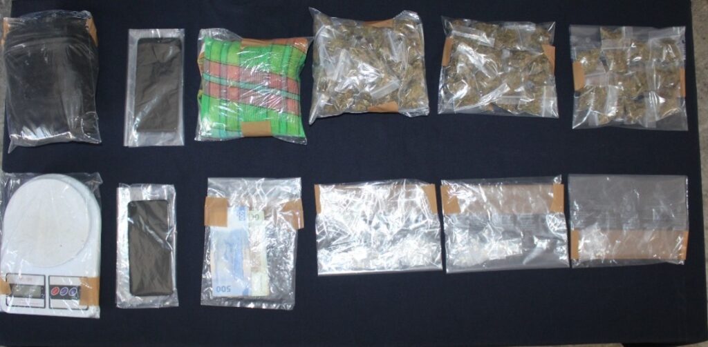 De inmediato, los elementos procedieron a realizarles una revisión, asegurándoles un bolso con 111 bolsitas con mariguana, 42 bolsitas con la droga “crack”, la cantidad de 3 mil pesos, celulares y una báscula.