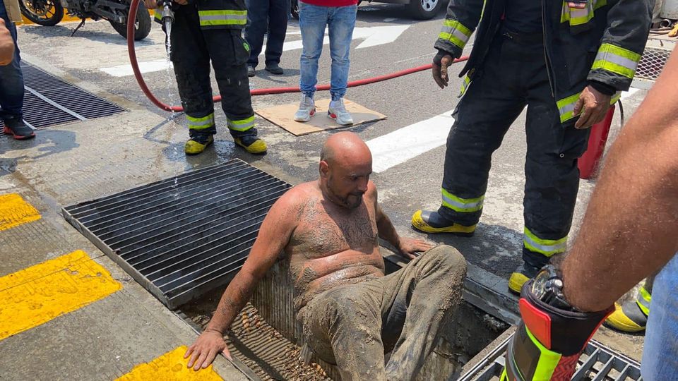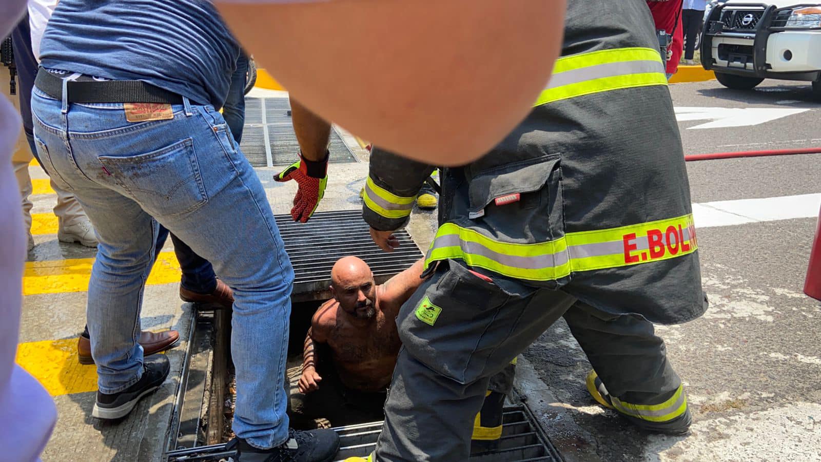 Un hombre, que al parecer padece de sus facultades mentales, se metió al drenaje, quedó atorado y pidió auxilio, por lo que fue rescatado por los cuerpos de emergencia de la ciudad de Veracruz.